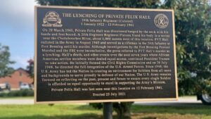 “They were meant to kill the victim and frighten the [Black] community,” said Bishop, noting that Hall “was neither the first nor last African-American service member whose murder was racially motivated.”