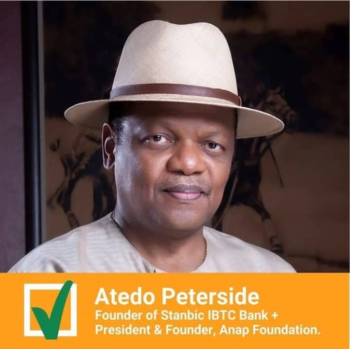 Ahead of the 2023 elections, Atedo Peterside, the founder of Stanbic IBTC Bank Plc and president of the Anap Foundation, says he is supporting the Social Democratic Party (SDP).
