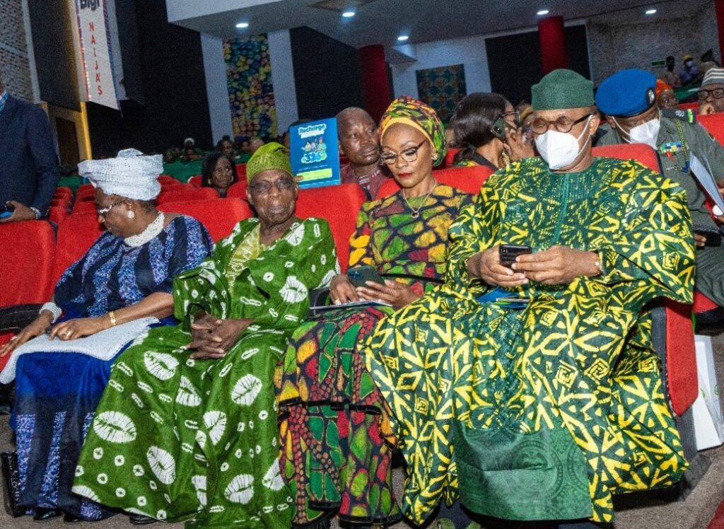From Right: His Excellency, the Executive Governor of Ogun State, Dapo Abiodun; with Her Excellency; First Lady of Ogun State, Mrs. Bamidele Abiodun; former President of Nigeria, Chief Olusegun Obasanjo; and Her Excellency, Mrs. Bola Obasanjo; at the “Adire Market Week” event with the theme “Authentic African,” which was held from 7 to 9 April, 2022, in Abeokuta, Ogun State, powered by the Bigi brand from the stable of Rite Foods.