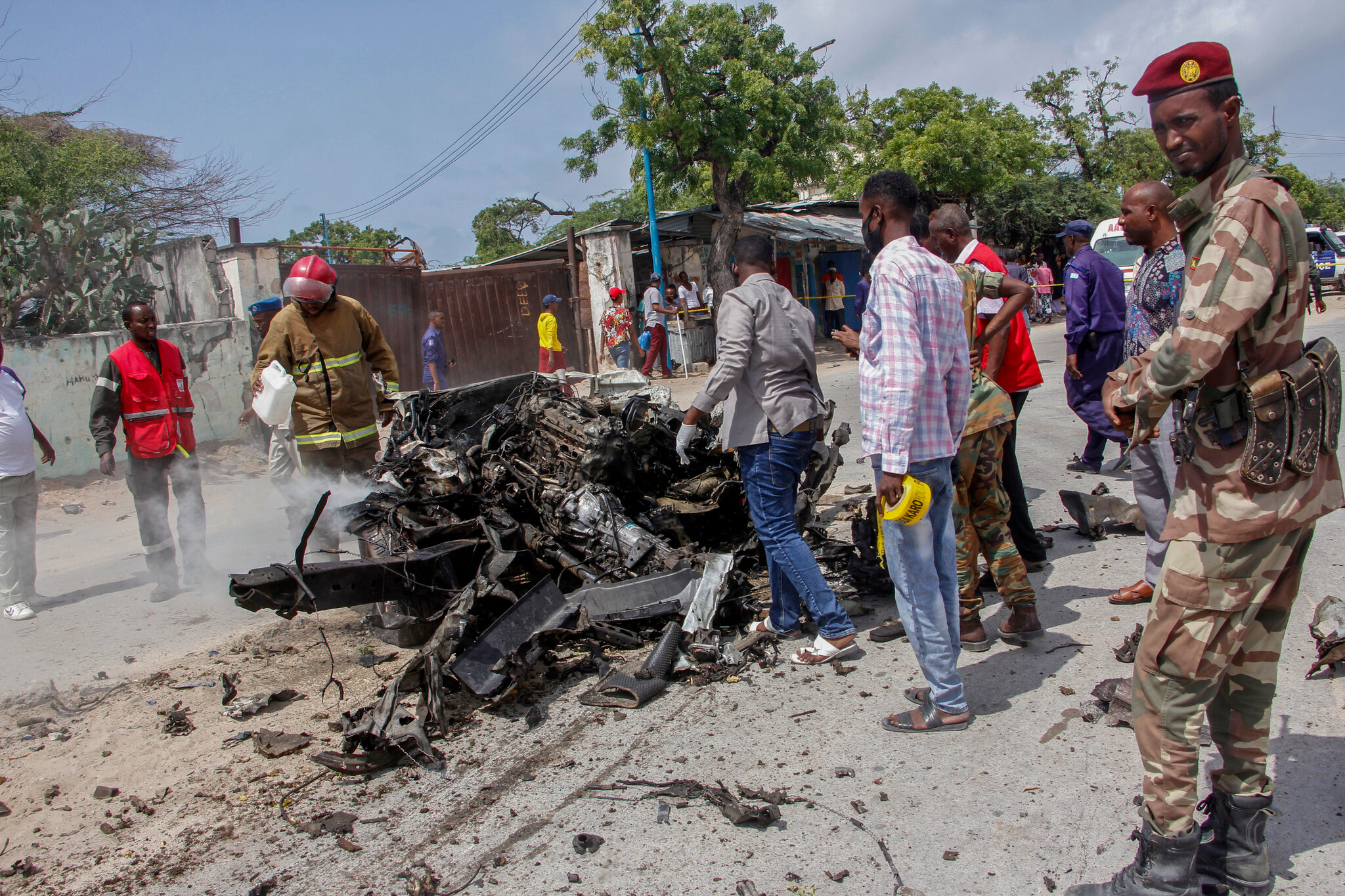 The blast near the K4 junction in the heart of Mogadishu was so large that walls of the nearby Mucassar primary and secondary school collapsed. Cars were mangled in the explosion.