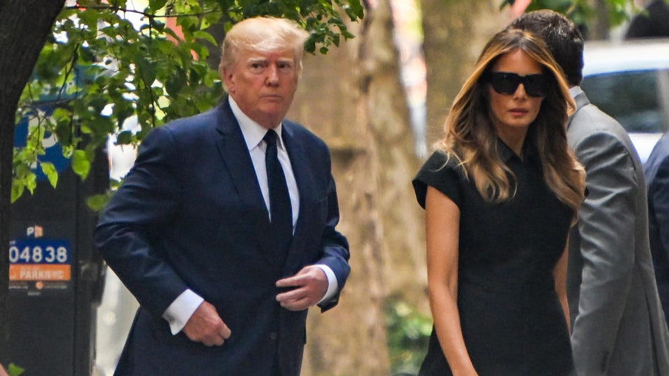 “A very sad day, but at the same time a celebration of a wonderful and beautiful life,” the ex-president wrote on his social media platform, Truth Social, before heading to the Mass with his current wife, former first lady Melania Trump.