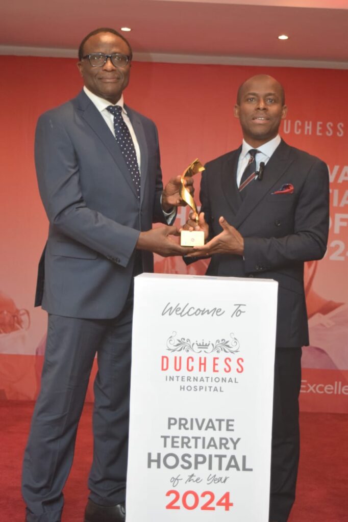 Duchess International Hospital, Ikeja GRA, Lagos has been voted the Private Tertiary Healthcare Facility of the Year 2024.  In a keenly contested nationwide voting process with nominees including several prominent and high-profile Nigerian hospitals, Duchess Hospital came first in the private tertiary healthcare facility of the year category. This award comes less than three years following the opening of the state-of-the-art medical facility, an indication of the remarkable achievement and hard work of the staff and management and their dedication to providing access to affordable quality healthcare on behalf of Nigerians.
