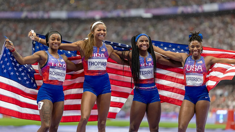 The day’s count was fueled in part by gold in women’s soccer, Masai Russell’s gold in women’s 100-meter hurdles, gold in both men’s and women’s 4×400-meter relay and gold in men’s basketball.