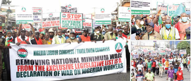 Organised labour, made up of the Nigeria Labour Congress and the Trade Union Congress, is demanding N494,000 minimum wage as opposed to N60,000 proposed by the Federal Government.