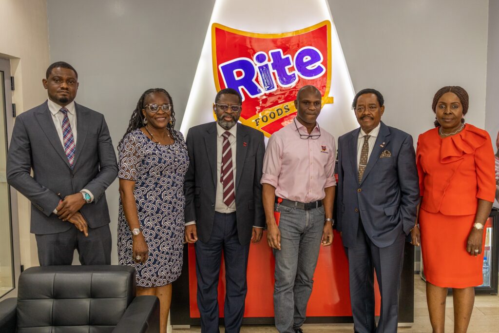 The Lagos Chamber of Commerce and Industry (LCCI) paid a courtesy visit to the corporate headquarters of Rite Foods LTD, leading manufacturers of carbonated soft drinks, Bigi drinks, energy drinks, premium table water and sausages in Opebi, Lagos. Receiving the President and Director General of the LCCI is Seleem Adegunwa, Managing Director, Rite Foods Ltd.
