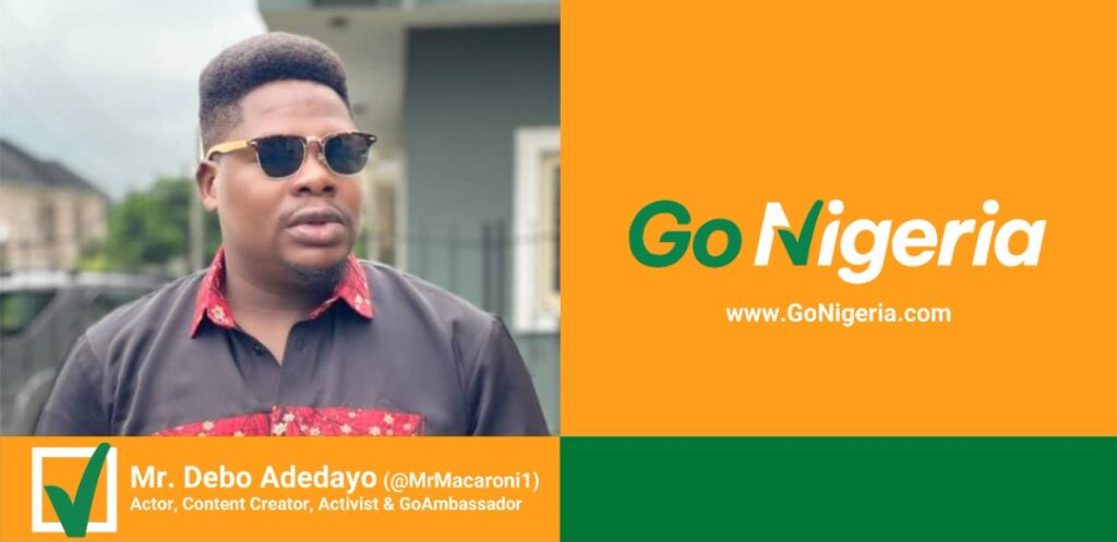 Mr. Debo Adedayo, Actor, Content Creator and Activist, who is popularly known by his stage name, Mr. Macaroni has joined other distinguished citizens and celebrities to become a GoNigeria Ambassador.