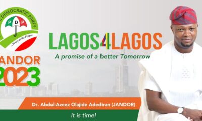 The Lead Visioner, Lagos4Lagos Movement, Dr. Olajide Adediran (Jandor) on Wednesday clinched the PDP ticket for the 2023 governorship election in Lagos State. Declaring the result...