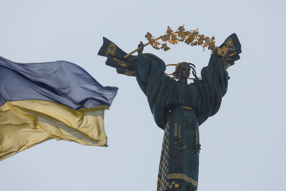 A Ukrainian national flag waves in front of the Independence Monument in the centre of Kyiv, as Russia’s attack on Ukraine continues, Ukraine August 24, 2022. Photo: REUTERS